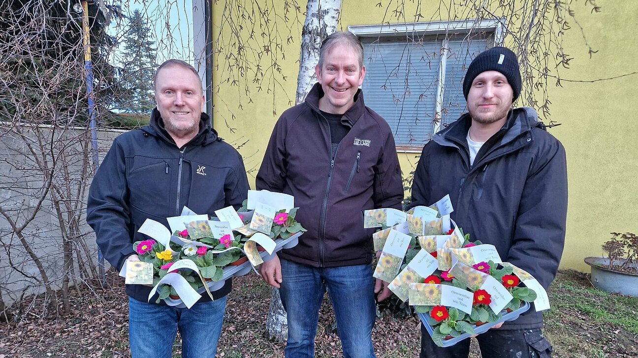 Kleine Gesten erhalten die Freundschaft und die Gemeinschaft. Deshalb haben Ortsvorsteher Peter Schmid und sein Team (Günther Neuhauser und Alexander Trettenhahn) den Valentinstag genutzt, um persönlich Blumen an alle Tallesbrunner Haushalte zu verteilen.
